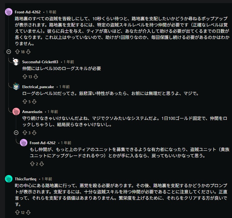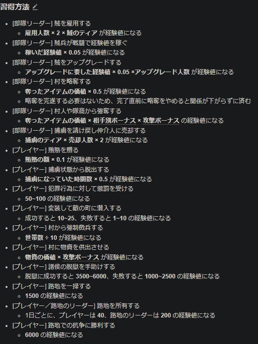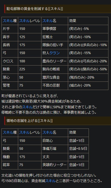 まとめると…文化を帝国にして、弓の扱いを上手くなって、INTは上げずにコンパニオンに任せて、金策して兵士のレベリングして、偵察 225「鋭い観察眼」、騎乗 225「巡回兵(騎乗)」と合わせて取得して”部隊内”の領主の捕虜が逃げ出す確率を0%にして敵を物理的に減らして、クーザイトを滅ぼすべし
